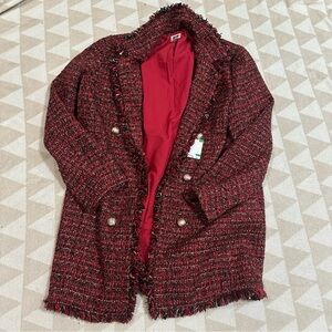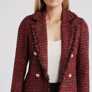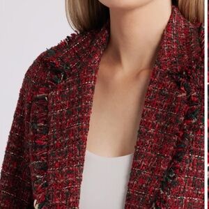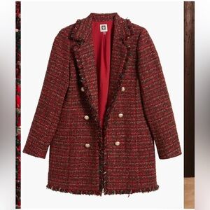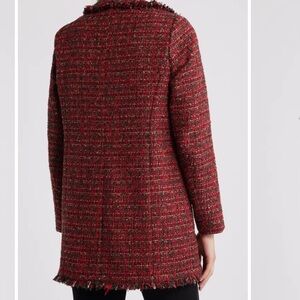 Fringe Trim Tweed Longline Blazer Anne Klein