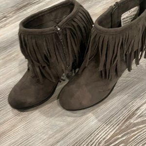 Great Fringe boots worn a couple times comfortable. Grey