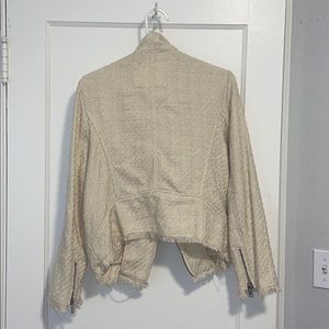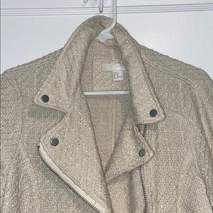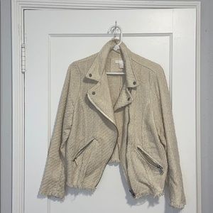 Tan jacket, lined with fringe on sleeves and bottom of the jacket. Worn only a handful of times! Size 10 but it runs a little snug, so could fit smaller