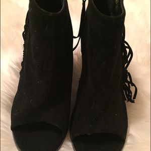 Only worn once fringe open toe booties fits true to size