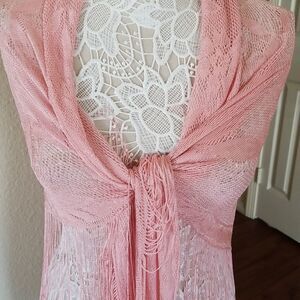 Beautiful and versatile, in a pretty pink color. Can be worn a lot of different ways. Roughly measures approximately 100"x55" B40.332