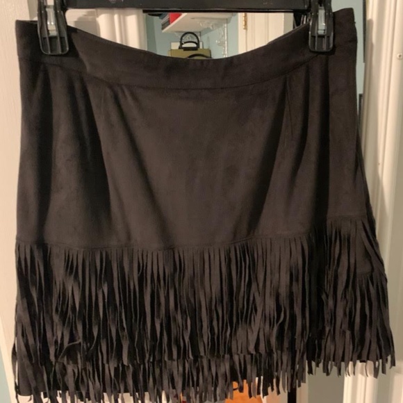 Fringed Black Vegan Suede skirt, size 12, NWT