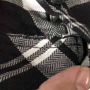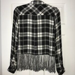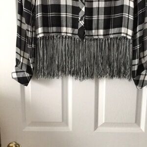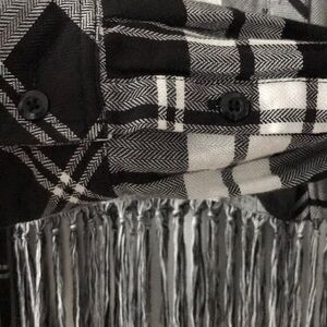 Fringed Cropped Woman’s Blouse Black White Plaid Button Up Top Size XSMALL