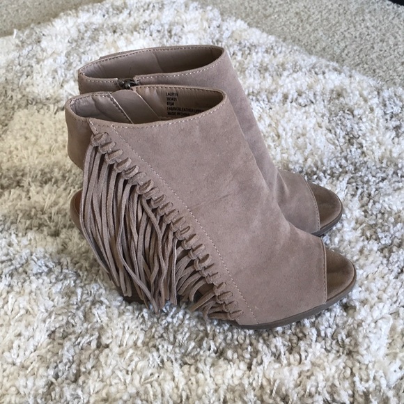 Fringed heals, only worn a handful of times! Both zippers work, runs a little small. In good condition :) I’m a 38/7.5-8 and these fit perfectly