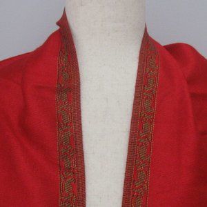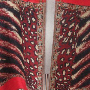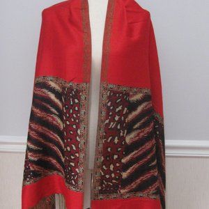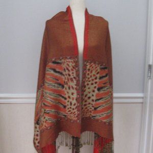 Fringed Pashmina Shawl Reversible Animal Print Scarlet Red to Burnt Orange 80x27