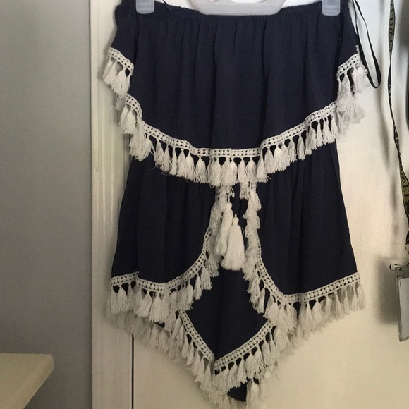 SUPER cute Island Gypsy romper. Navy blue with white fringes. Perfect for summer. I am 5’6 and it is just too short for me now. Absolutely loved this romper.