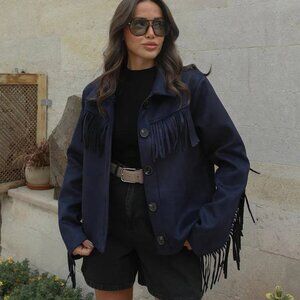 #fringejacket #suedejacket #croppedjacket #bohostyle #westernstyle #tasseljacket #statementjacket #fallfashion #festivaloutfit #womensouterwear