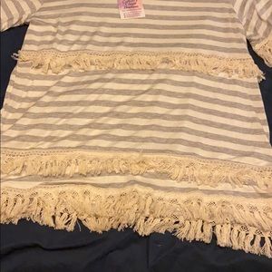 Gray and white stripe with cream fringe. NWT. Size Large