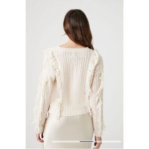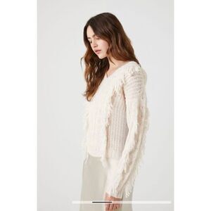 Juniors fringed cable knit sweater v neck long sleeve very soft.