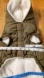 Excellent condition dog insulated love coat. Velcro fastener. 2 snap pockets. Toggle pull. Hood can snap back out of the way. Olive color. Fuzzy inside. See pic infor for more description