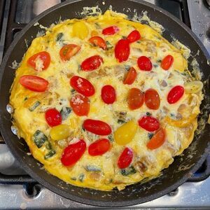 Frittata recipe. All the veg in the fridge and aged Gouda YUMMY