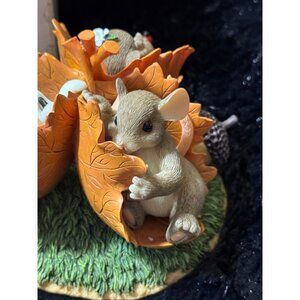 This collectible figurine from the Charming Tails series showcases intricate craftsmanship and a playful autumn theme, making it a fine addition to seasonal decor.