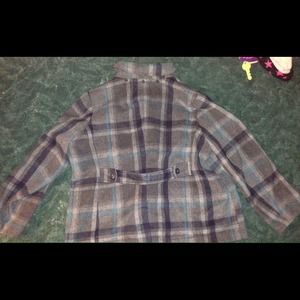 Fritz Wright Gray/Black/Teal Plaid Plus Size Peacoat w/Double Buttons and Belt Across Back!! Size 3X. NWOT. Buckles on wrists with matching buttons!! Gorgeous coat and very classy!!