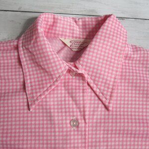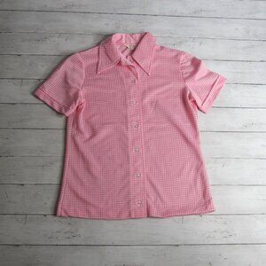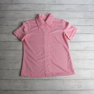 Fritzi Vintage Women's Pink Gingham Knit Blouse Top Size M MCM Short Sleeve USA
