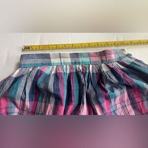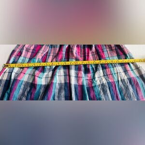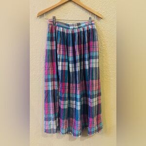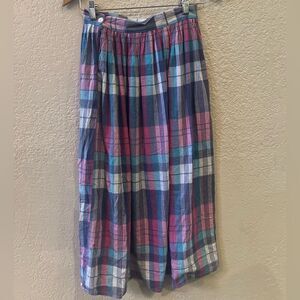 Fritzi of California Midi Skirt Sz 8 plaid Pleated Pockets Pink Blue 100% Cotton