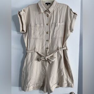 Frnch Paris Melina Playsuit Romper Large Cream Cotton Belted Button Front Pocket