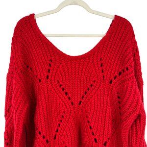 Frnch Paris Red Open Knit Scoop Neck Sweater Size Medium