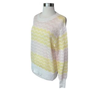 Frnch Sweater Womens Striped Long Sleeve Stretch Scoop Neck Yellow Large NWOT