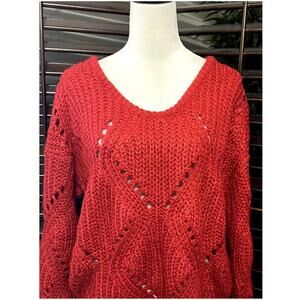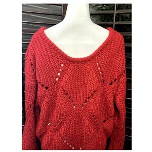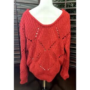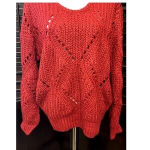 Frnch Women's Red Loose Knit Sweater Slouchy Long Sleeve M/L NWOT