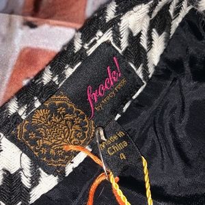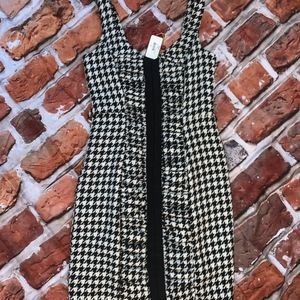 NWT Frock by Tracy Reese Claire Dress Classic Chic little number! Sleeveless Tweed houndstooth in black & cream. Underarm Zipper for closure, front has hook &n eye down the front in a back trim-these are for looks they do not open the dress. Belt loops but no belt. Made of a polyester blend with Dry Clean Instructions.