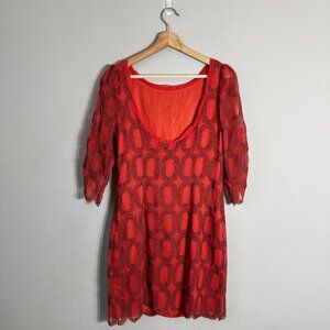 Frock! by Tracy Reese Silk Backless Mini Dress Women's 4 Red Black Embroidered