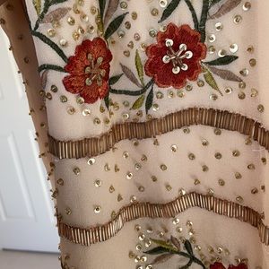 Rose dust/ peach colored knee length dazzling cocktail dress from ASOS. Unworn with tags. Size 14 UK, 10 US but runs a bit large and the fabric has some give. Hand embellished. Floral. Comes with bag of extra beads.