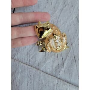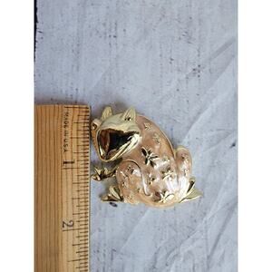 Frog Brooch Pin Enamel Gold Tone Pink Vintage Retro Unbranded Amphibian