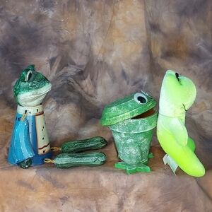 Frog Collectibles Trio Classic Toy Co Plush,Clay Pot frog,Resin Metal Wood Frog