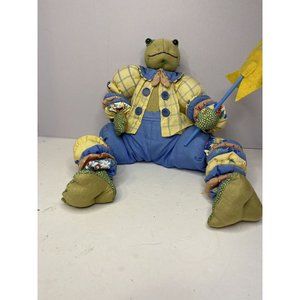 Frog Doll Shelf Sitter Pinwheel Yolo Arms & Legs Nursery Handmade Folk Art