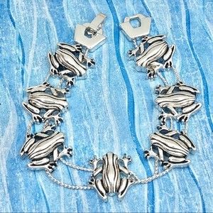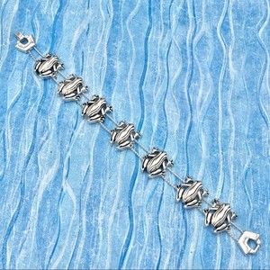 🌼 Frog Double Row Slide Charm Silver Clasp Bracelet