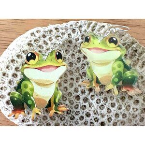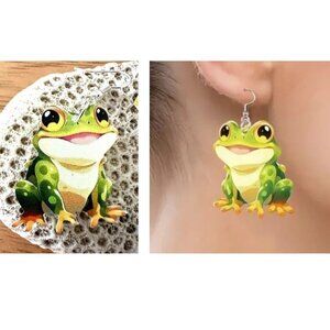 Frog Earrings New Dangle Hooks Green Double Sided Horny Toad Jeremiah Bullfrog