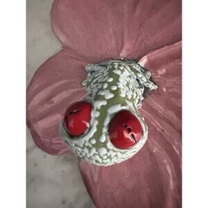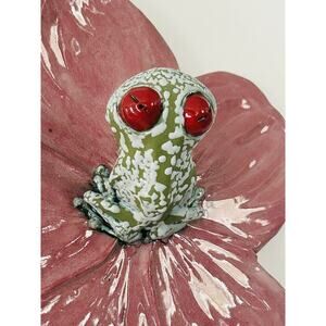 Frog Pink Flower Hanging Wall Decor Lid Hand Made Pottery Leaf Tree Frog Red Eye