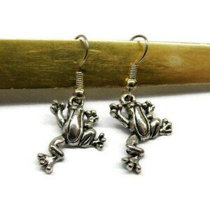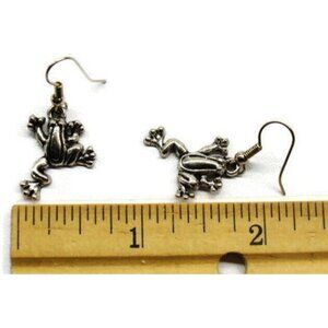Frog Silver Tone Vertical Drop Dangle Hook Earrings Womans