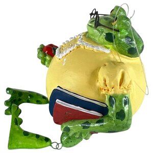 Frog Teacher Christmas Ornament With Apple & Book Dangling Legs Novelty Gallerie