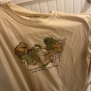 Enjoy a whimsical touch with this cream Frog and Toad t-shirt. Perfect for fans of the classic story.