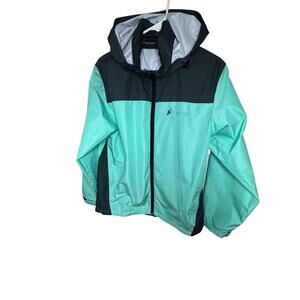 FEATURES/ACCENTS: water resistant, wind resistant, and breathable, comfort, Adjustable, tuck away hood with E-Z Push cord locks, Full front zip closure, Elastic cuffs with hook and loop
