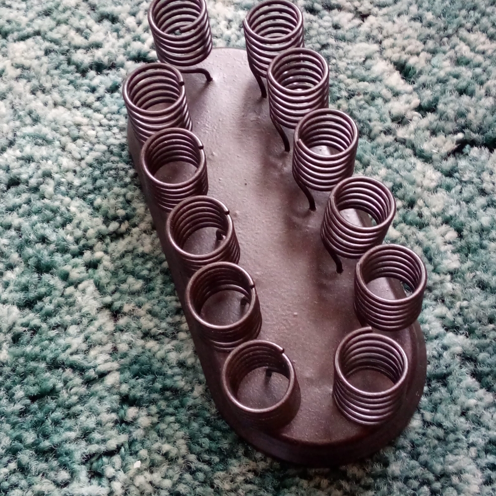 Brown metal frogs. 6" long x 1 1/4" tall. This would look good on your desk holding your mail. Bundle for deals.