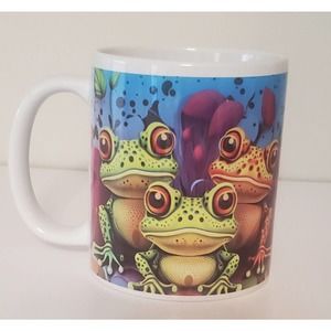 New Frog mug. The design is a sublimation of a trio of frogs. This mug is 11 ounce size.