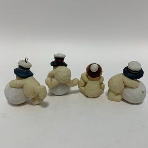 Frolicking Snowmen Ornaments 4 Used see photos (1snowman missing nose)