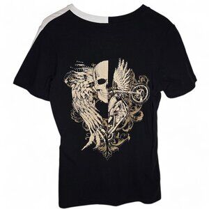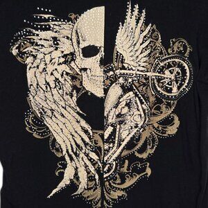 From Los Angeles by Bus Stop Top Women's Jewel Studded Angel Wing Skulls Moto.