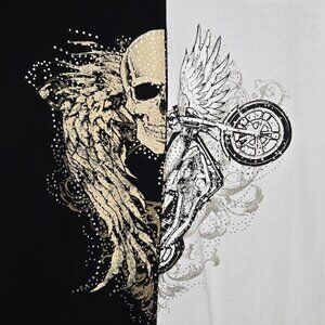 From Los Angeles by Bus Stop Top Women's Jewel Studded Angel Wing Skulls Moto 2X