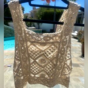 From My Boutique Crochet Cream Cover Up Tank Top-One size