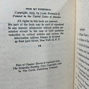From My Experience By Louis Bromfield Hardback Book Club Edition 1955 Harper & B