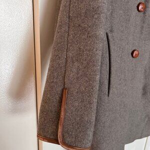 From Paris - French Brand Sessùn Grey Wool Coat with Leather Trim + Buttons