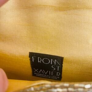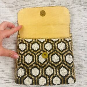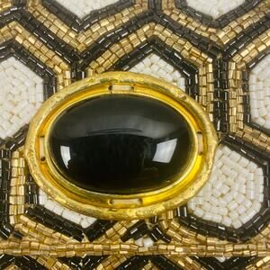 From St. Xavier Black White Gold Beaded Clutch Removable Chain Deco MCM NWOT