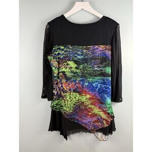 From the Heart Womens Tunic Top Size L Artsy Boho Sheer Mesh Lagenlook