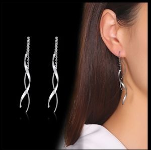 Front Back Twisted Silver Tone Earrings NEW