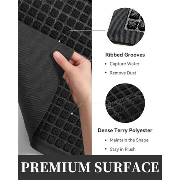 🧿Water Absorbent&Dirt Trapper: Terry polyester surface with ribbed grooves that effectively capture water while removing dust, mud, debris, and grass from the crevices of your shoes, boots, and even muddy paws. Perfect outside inside door mat to keep your home tidy and clean effortlessly.