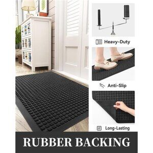 🧿Natural Rubber Border: Beveled one-piece molded rubber borders designed to address common issues such as curling, tearing, and water leakage. Many cheap entryway mat break from the edges, and our entry mat definitely has better longevity and resilience.