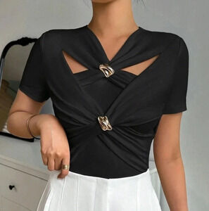 Front Hollow Out Short Sleeve Slim Fit T-Shirt